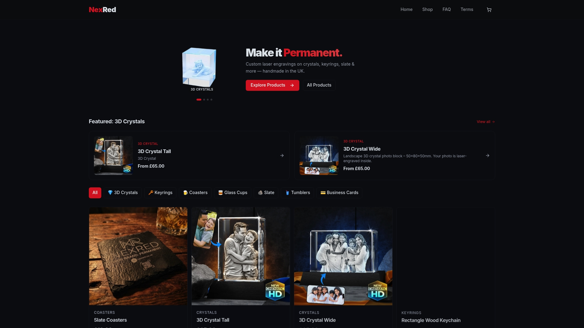 At NexRed, we've built our entire process around making personalised gifting seamless for individuals and small businesses alike. Whether you need a single engraved crystal keepsake or a batch of branded business gifts, our platform supports real-time design previews, clear order tracking, and production handled by skilled craftspeople. Explore our full range of personalised gift options and see how straightforward a polished, professional workflow can be. From keyrings and coasters to 3D crystals and tumblers, every item is produced with the same attention to detail that your recipients deserve.